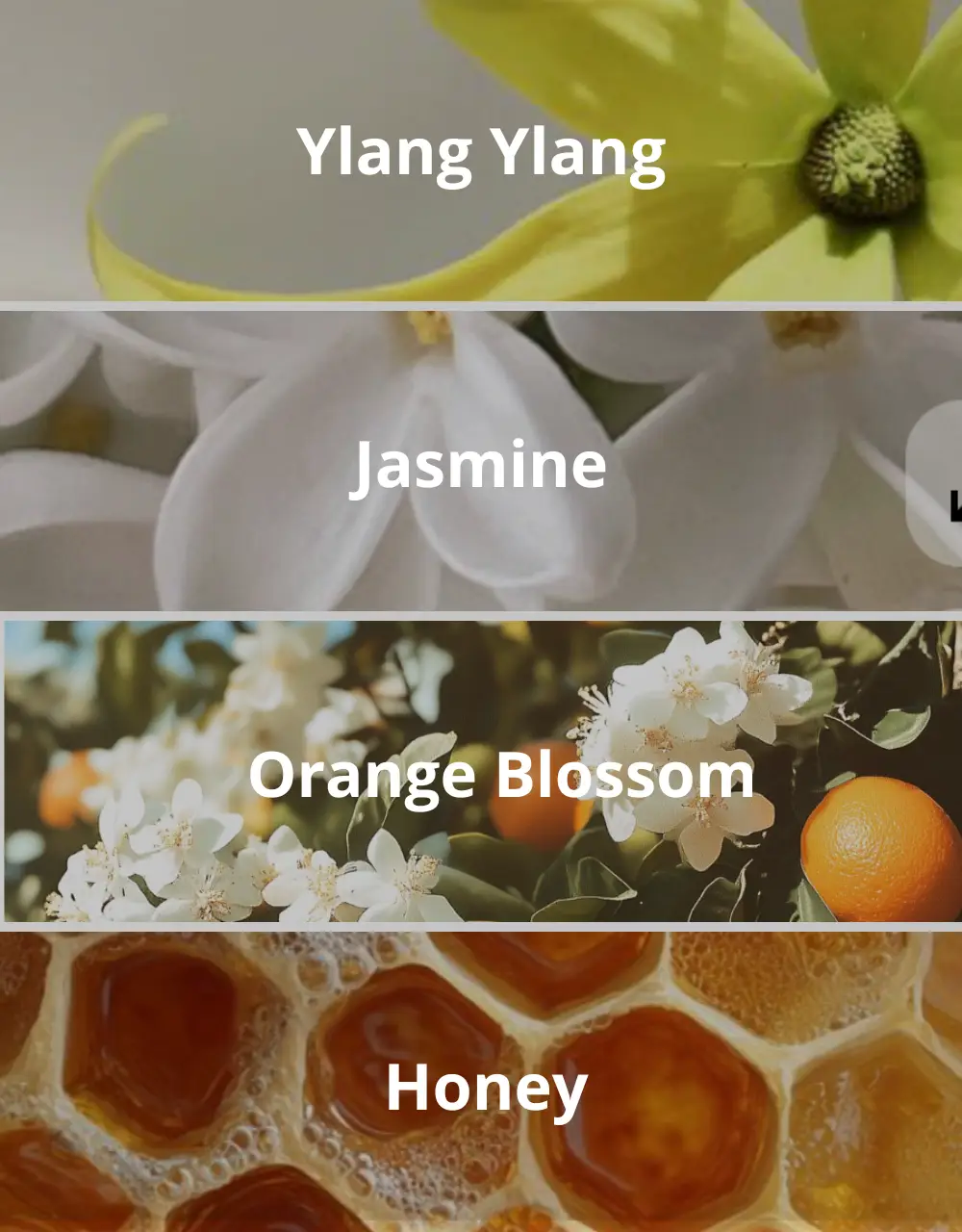 Respirer ce délicat bouquet, où l’exotique ylang ylang rencontre la sensualité du jasmin, de la fleur d’oranger et de l’œillet. Une composition florale se terminant sur une douce et gourmande note de miel.