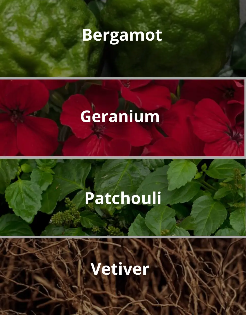 Notes de Fond : Vétiver, Patchouli, Bois clair