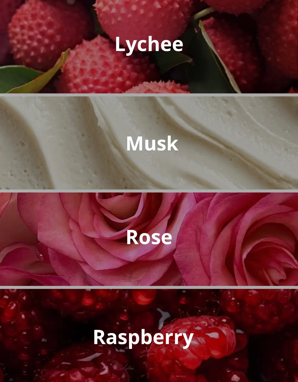 Notes de Fond : Framboise, Musc blanc, Accord fruité