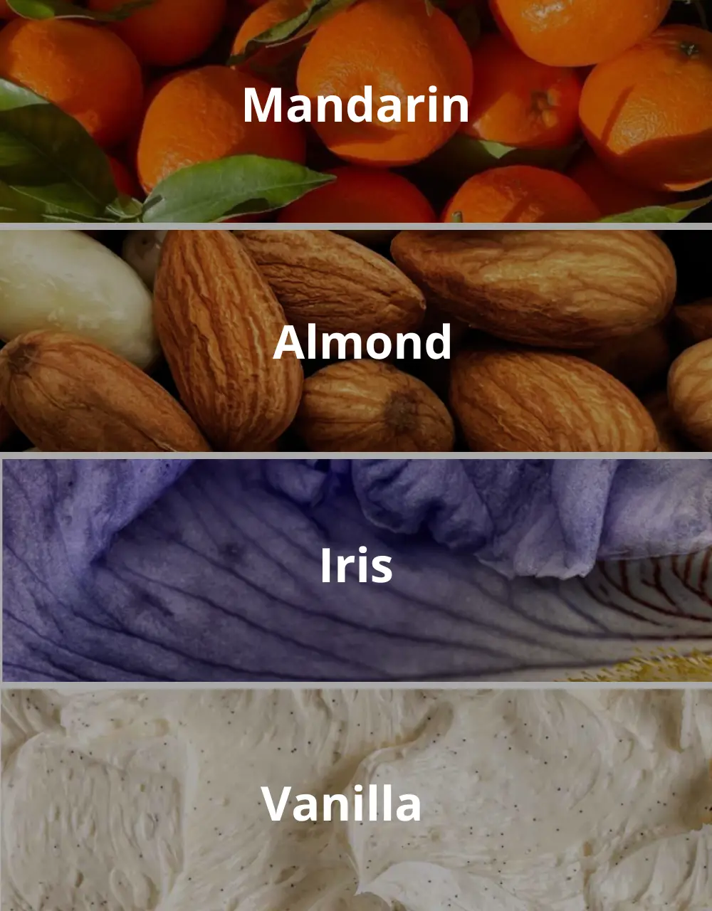 Notes de Tête : Mandarine, Bergamote, Amande
